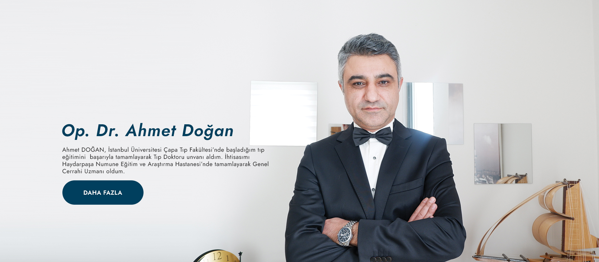 Ahmet DOĞAN, İstanbul Üniversitesi Çapa Tıp Fakültesi’nde başladığım tıp eğitimini başarıyla tamamlayarak Tıp Doktoru unvanı aldım. İhtisasımı Haydarpaşa Numune Eğitim ve Araştırma Hastanesi’nde tamamlayarak Genel Cerrahi Uzmanı oldum.Mecburi hizmetimi mardin midyat devlet Hastanesinde yaptım.Mecburi hizmet görevim sonrası özel kliniğimde mesleğime devam ediyorum. Aynı zamanda akademik çalışmalarıma istanbul atlas üniversitesinde dr.öğr.üyesi olarak devam etmekteyim.Minimal invaziv cerrahi,laparoskopi ve robotik cerrahi üzerine eğitim ve uygulamalarım mevcuttur.